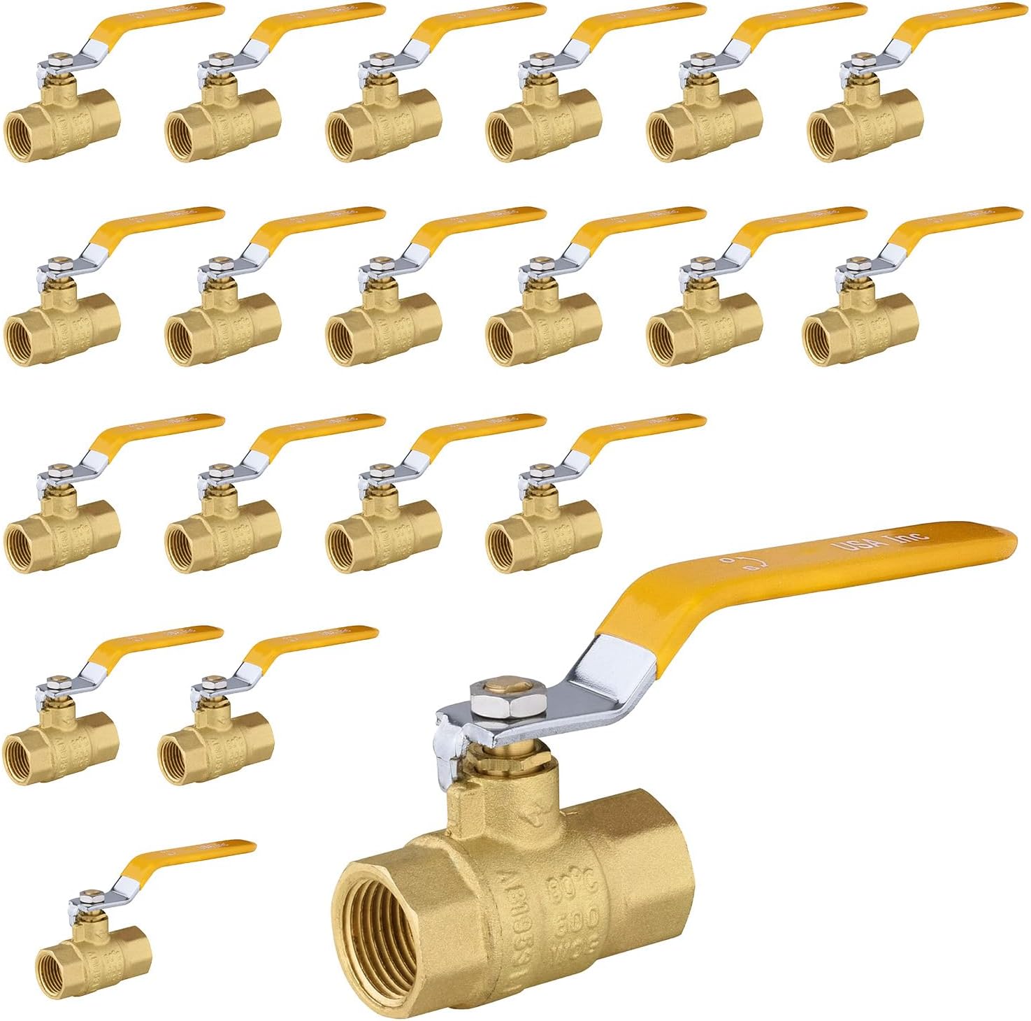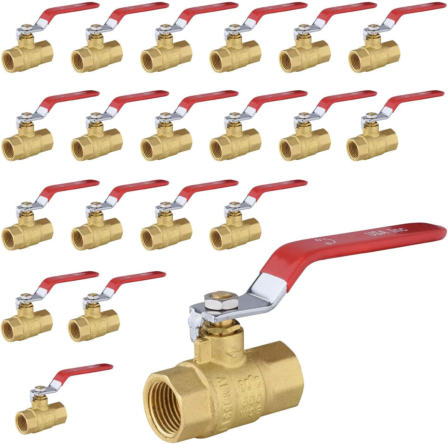 Niikappu 3/4" Ball Valve FIP Threaded, 10 Pack Shut Off Valves Red, Forged Brass Full Port Shut Off Ball Valve With FNPT Connector, 150 PSI WSP/600 WOG