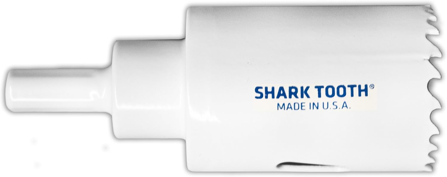 Shark Tooth hole saws are professional bi-metal saws with Cobalt high speed steel teeth, electron welded to shatterproof, shock absorbing alloy bodies. Shark Tooth's variable pitch tooth pattern cuts clean through stainless steel, brass, aluminum, pipe steel, nail embedded wood, hardwood, plywood, sheet metal, fiberglass and plastic.