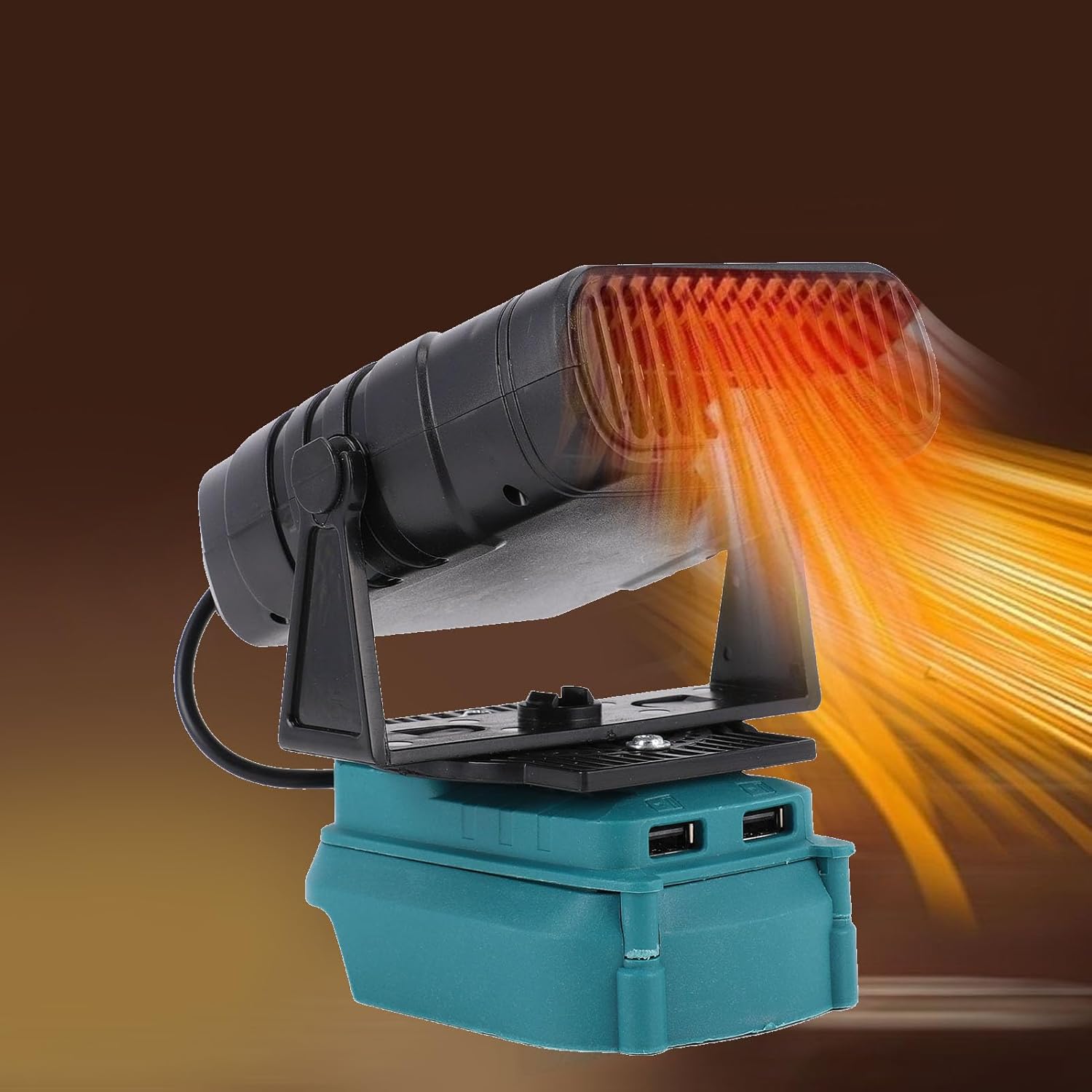 Specification: Item Type: Constant Temperature Space Heater Product Material: ABS Rotation Angle: Left and right about 60°, up and down about 50-60° (If there is no suitable angle, you can remove the screw to pull out the heater head for flexible placement) Power: 200W Temperature Range: 1st gear nature airflow, 2nd gear temperature 55-85℃ 2 USB Interfaces Output Current: 2A Applicable Battery: Fit for Lithium Ion Battery (not included) (Fit for BL1815 BL1820 BL1530 BL1840 BL1850 BL1860) Compatible Battery: Fit for BL1850B (197285-8), BL1840B (197270-1), BL1830B (197602-2), BL1430B (197618-7), BL1820B (197487-6) B Series Li Battery Fit for BL1850, BL1840, BL1440 (196391-6), BL1415 (194560-3), BL1815N (196781-3) Incompatible Battery: Not Fit for BL1813G (196663-9), BL1413G (196882-7), BL1415G, BL1430G, BL1815G, and other G Series Battery Not Fit for 1822 (194465-7), and other 18V NiCD Battery How to Use: Take out the product, install the battery (not included) and press the power key to use it PackageList: 1 x Constant Temperature Space Heater Note: 1. The product does not come with a battery and customers need to prepare their own. 2. When adjusting to the second gear, please do not directly place your hand in the air outlet to test the temperature to avoid burns. The correct way is to place your hand 30cm away from the air outlet to test the temperature.