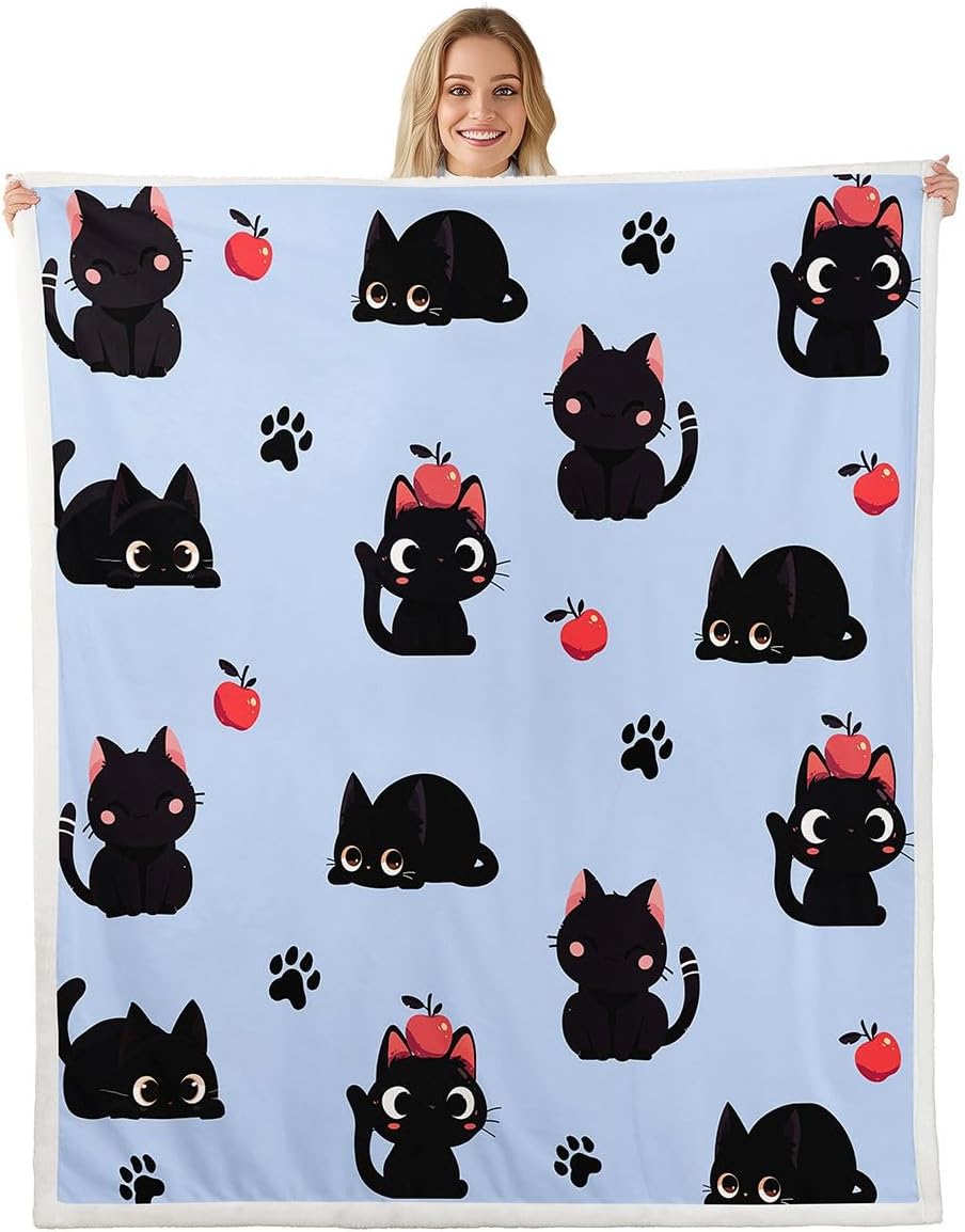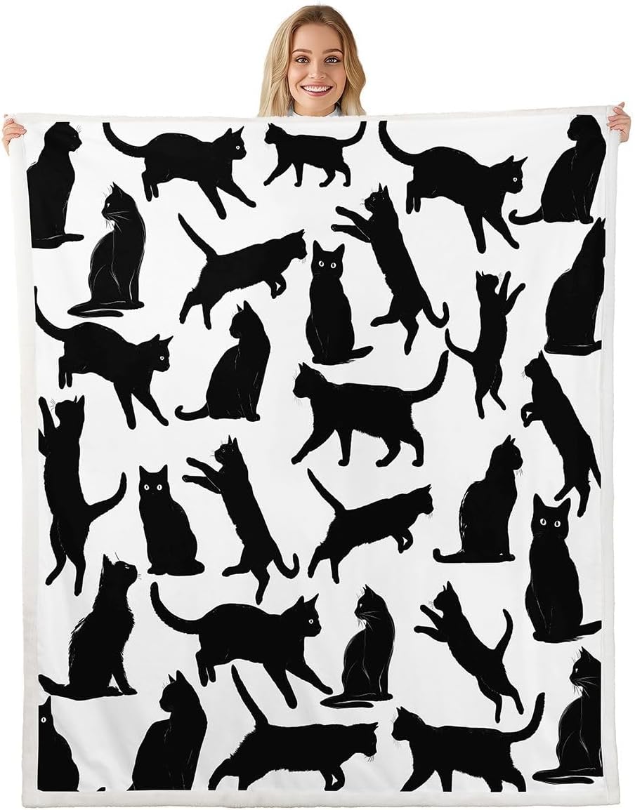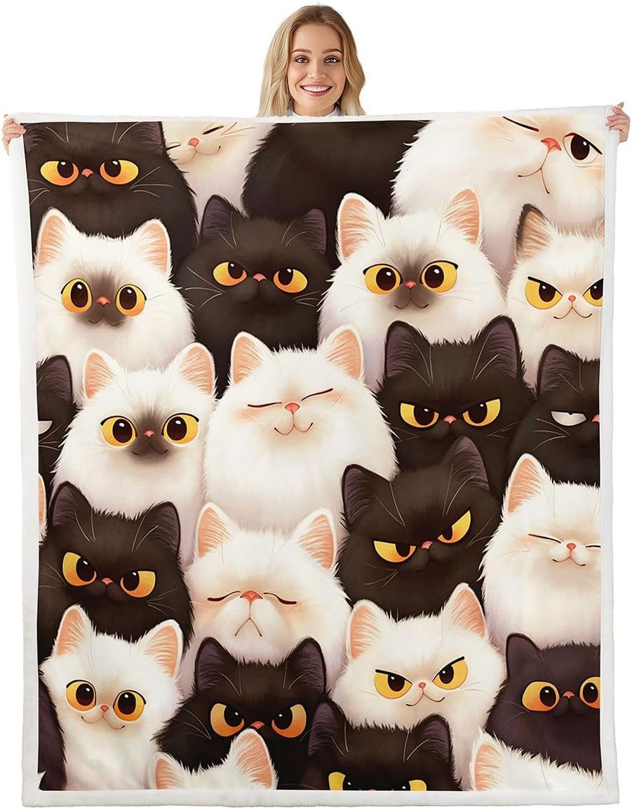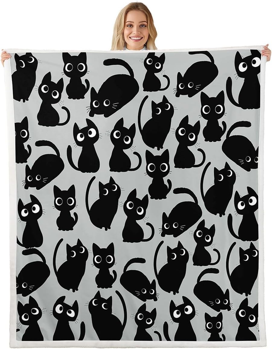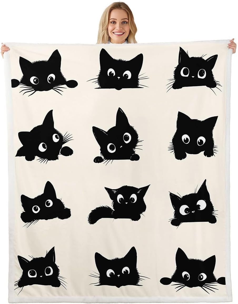 Erosebridal Cute Cat Fleece Blanket Queen 90x90 for Kids Boys Girls (Black and White) - Funny Black Cats Sherpa Blanket Cartoon Kitten Animal Fuzzy Plush Throw Cute Cat Decor