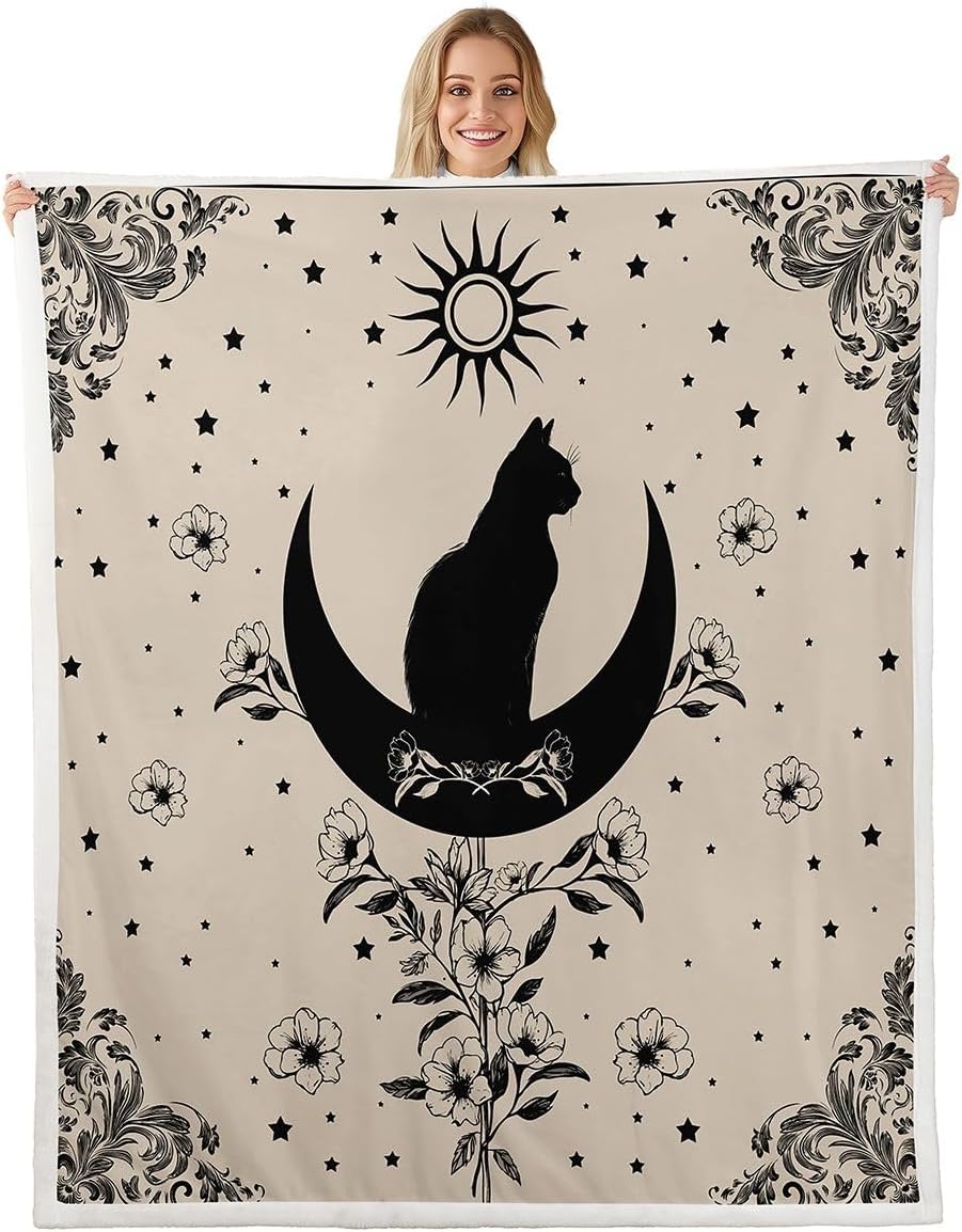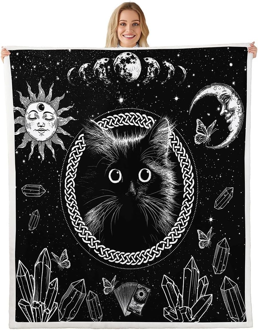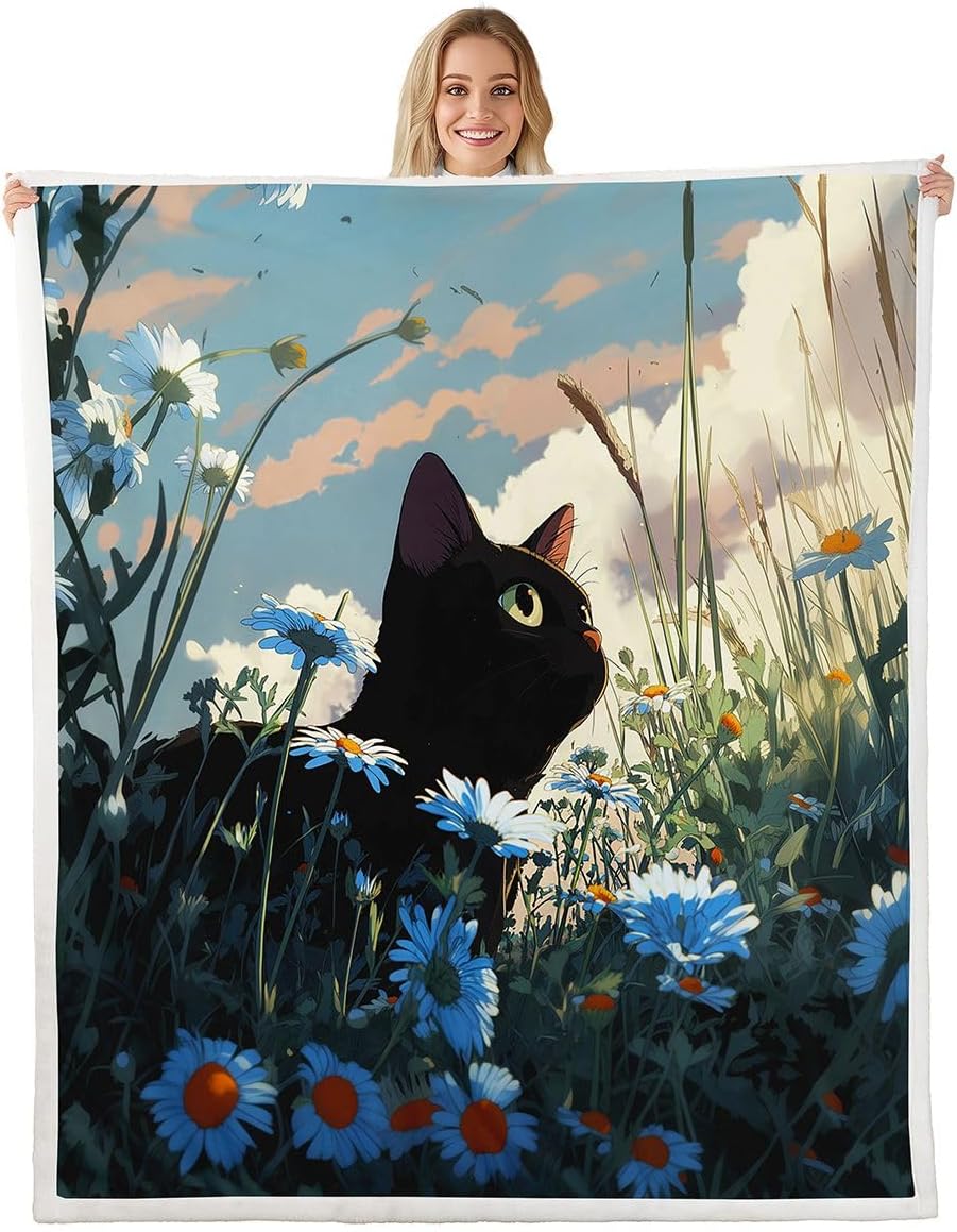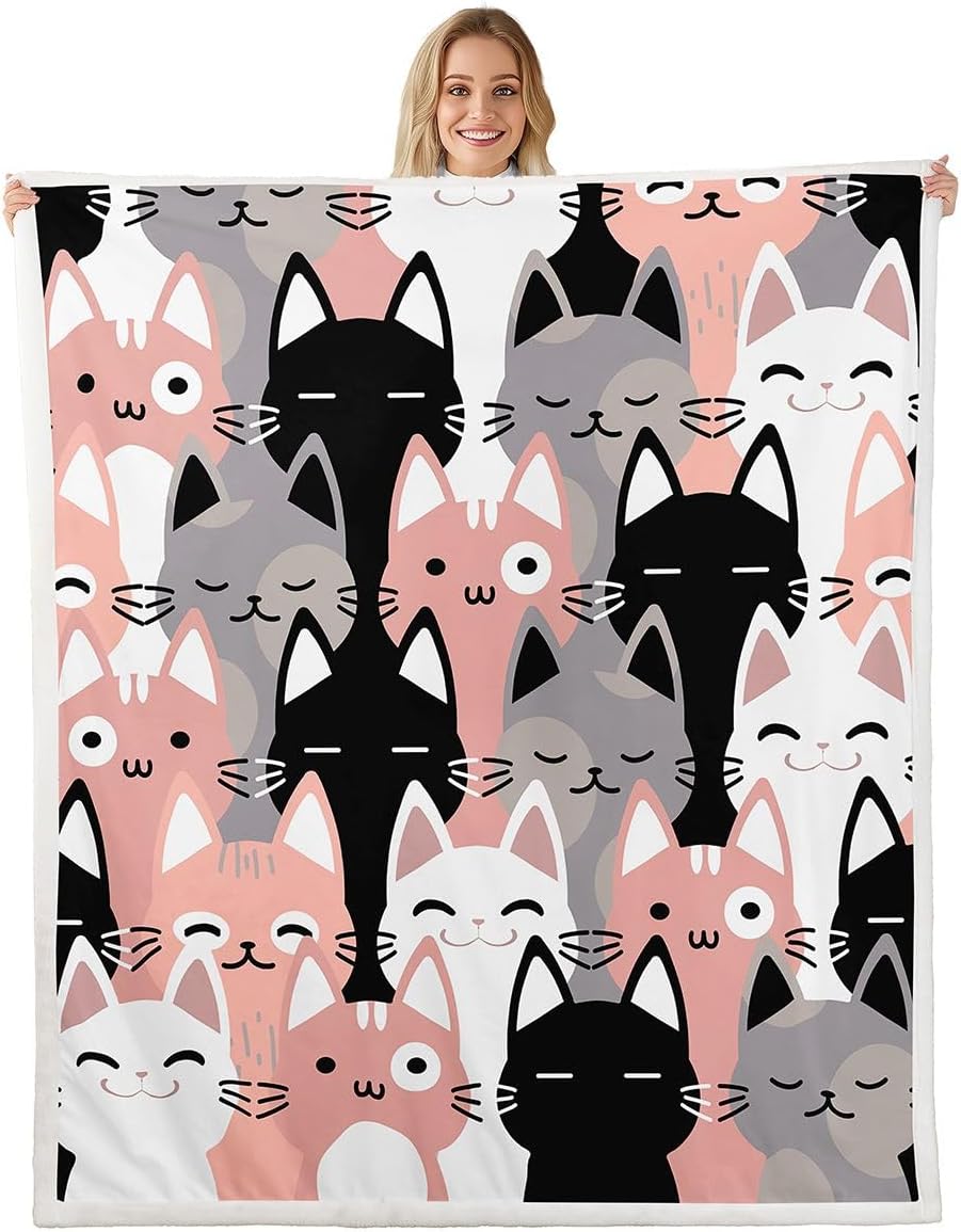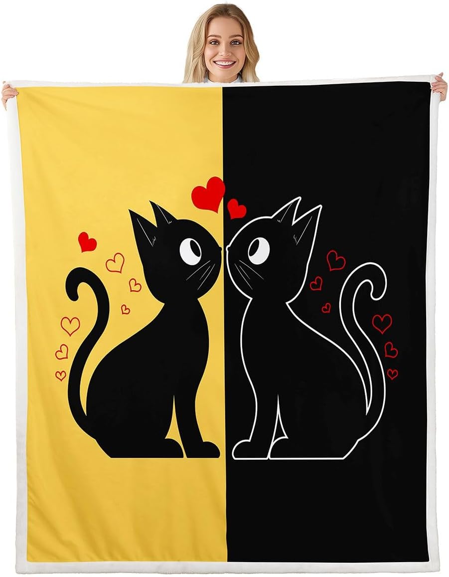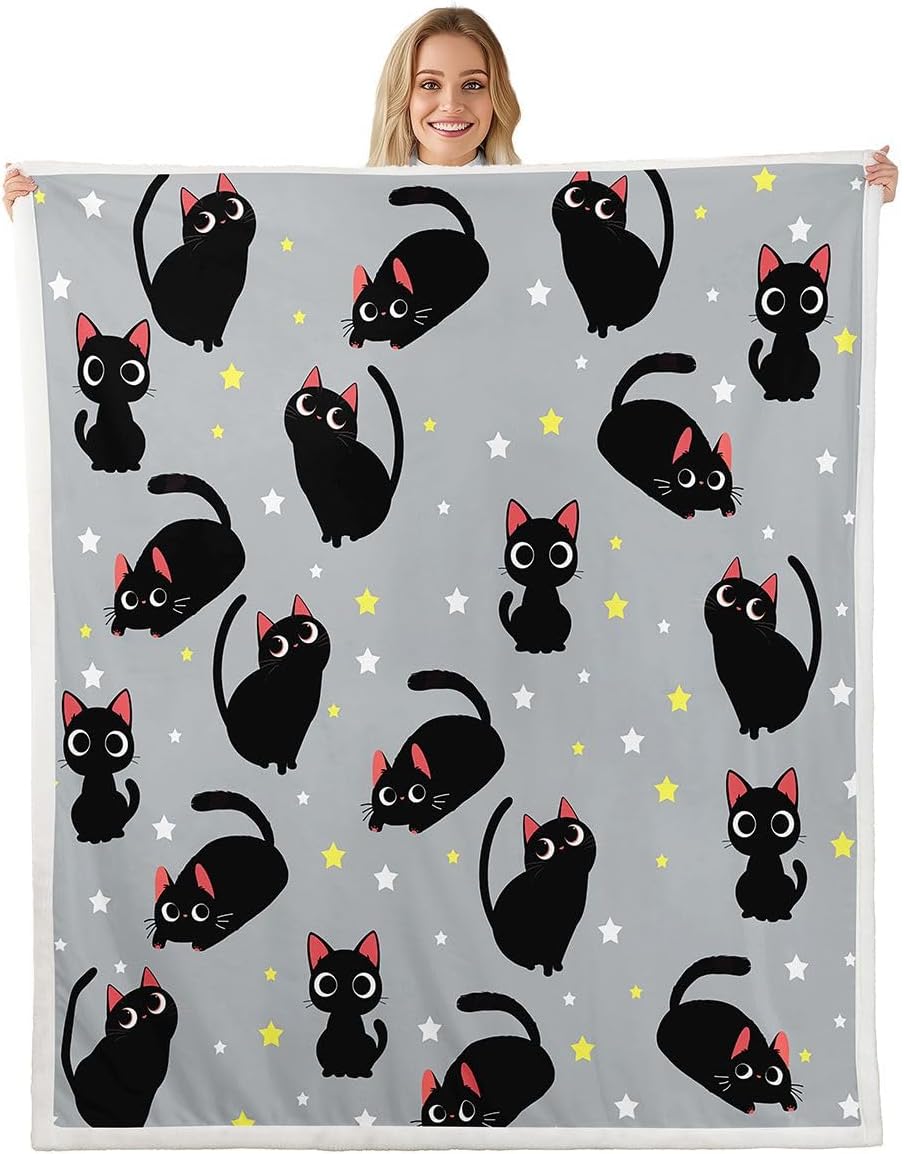 Erosebridal Cute Cat Fleece Blanket Queen 90x90 for Kids Boys Girls (Black and White) - Funny Black Cats Sherpa Blanket Cartoon Kitten Animal Fuzzy Plush Throw Cute Cat Decor