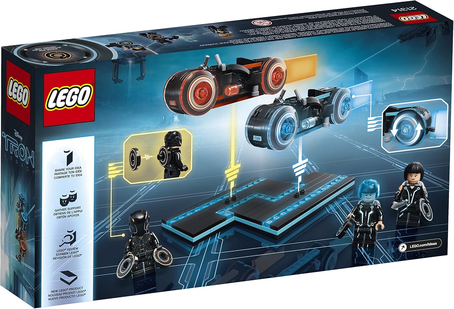 Build, play and display with this futuristic LEGO Ideas 21314 TRON: Legacy set from Disney, featuring 2 Light Cycles, each with minifigure seats and translucent-colored light-style elements, plus a divisible TRON grid with attachment points for the vehicles. Use the grid as a display base for the Light Cycles or split it in 2 to recreate the chase scene from Disney’s TRON: Legacy movie. Alternatively, stage an Identity Disc battle between the 3 included LEGO minifigures—Sam Flynn, Quorra and Rinzler—on the grid. This construction toy includes a booklet with information about its fan creator and LEGO designers, plus the lowdown on Disney’s TRON: Legacy movie and its main characters.