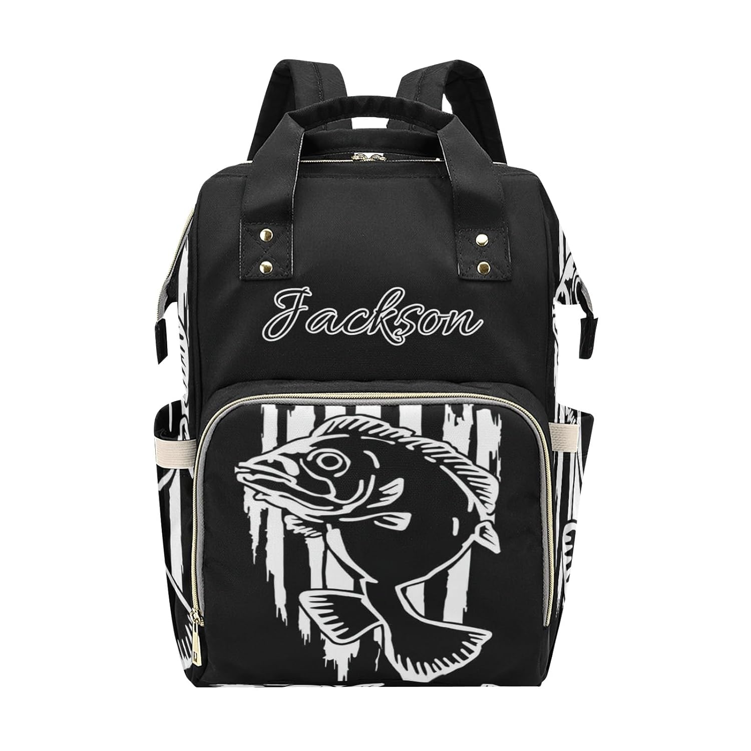 Custom print personalized name text on your diaper bag backpack,so fashionable and especially.* SIZE *10.83"(L) x 6.69"(W) x 15"(H) x 3.1"(Hand Drop).* METERIAL * Made from waterproof nylon,and fashionable.* FEATURE *Upgraded version of the shoulder strap,more comfortable,adjustable.large capacity baby backpack diaper bag insulated for mom or dad.the handles are well made and comfortable to carry either over the shoulder,cross body or on the arm,etc.* STRUCTURE* Multi-function backpack.One main compartment and some seperate pockets inside provide enough space.You can put food,clothes,water bottles,diaper,books etc.Front compartment includes 3 seperate insulated pockets that can hold milk bottles.* MULTIFUCTION*The travel backpack is professional in baby care,you can use it yourself or send it to novice parents as an ideal gift,it can be also used as a travel backpack because of its stylish design,multifunctional pockets,cute printing, enjoy this backpack in your life.