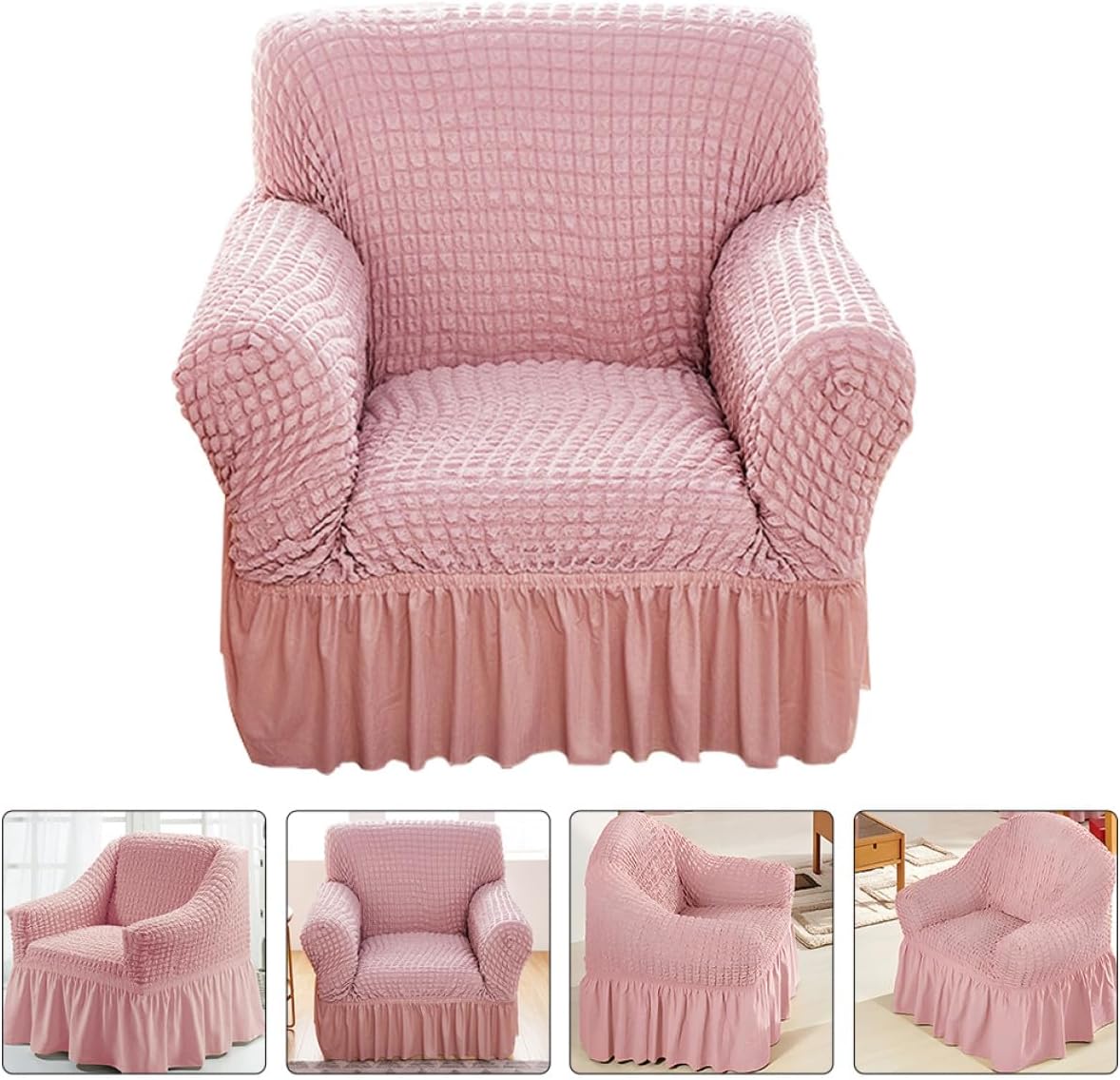 Package Include 1 x sofa cover Characteristics - Size: 95.00X85.00X60.00cm/37.34X33.41X23.58in -Product Info:Fabric sofa cover -Material:Polyester, polyurethane - Color: Pink -Note: Suitable for measuring length 90-140cm oversize chair stretch cover - Your home will have a new look with this simple but practical sofa cover, and easy for replacement recliner cover. - Excellent workmanship, recliner cover with good texture, fine details, easy to installation lazy sofa cover. - This recliner cover is easy to put on and take off, transform your old recliner to new and protect your new one covers for recliners. - The recliner cover color is simple, fine and texture, comfortable and supple for using. - The recliner slipcover is well-made of sturdy materials, safe and practical for using time.Goods Informationcouch cover recliner Bring a new appearance for your sofa.covering for recliners Change your old or dirty recliner slipcover, give your recliner a new look.recliner chair covers Not only can protect your sofa from stains, wet and more, also can decorate your sofa.covers for recliners Made of sturdy material for long time and use