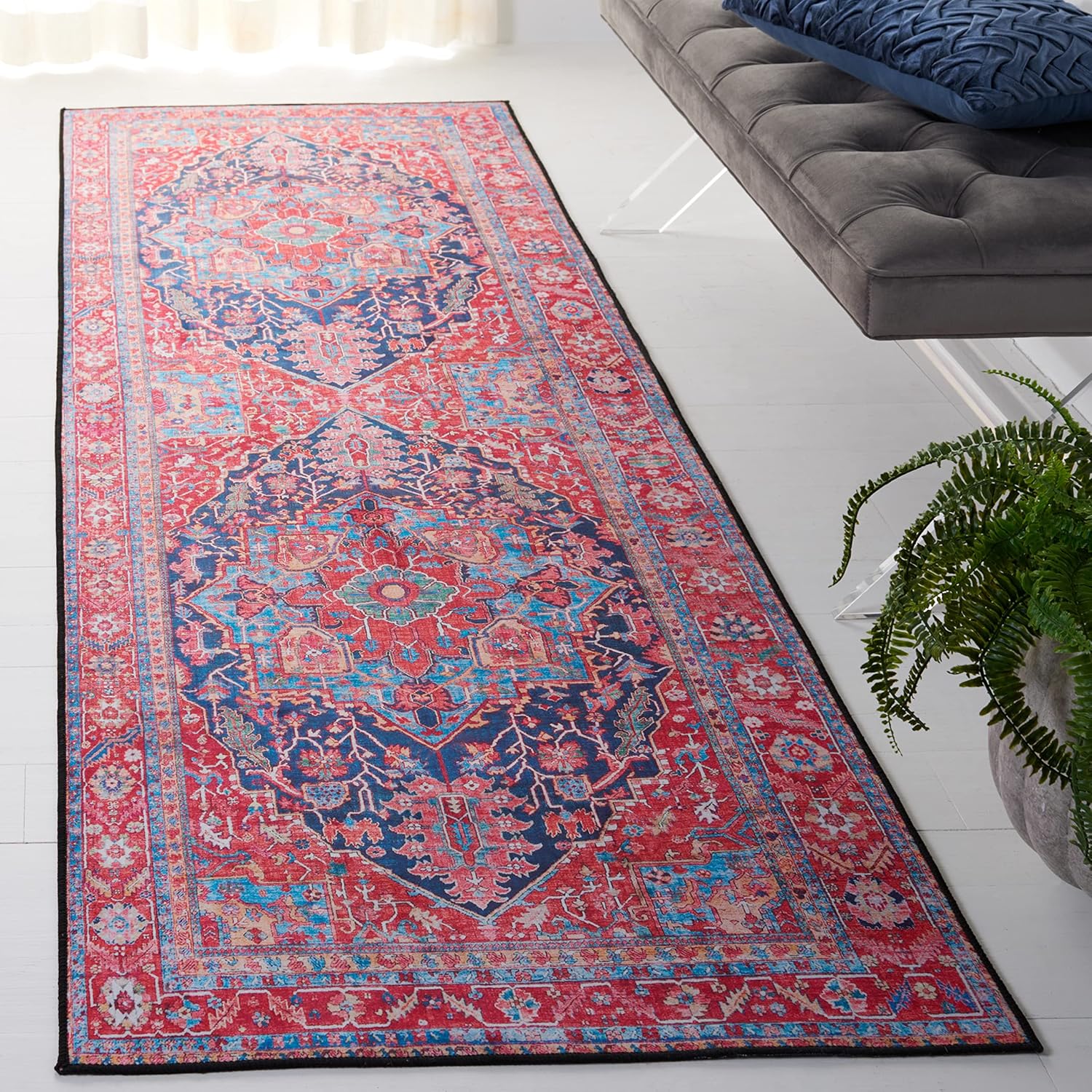 | Model Name | SAFAVIEH Tucson Collection TSN121N Boho Chic Oriental Machine Washable Non-Shedding Living Room Dining Bedroom Area Rug 5' x 8' Navy/Red |