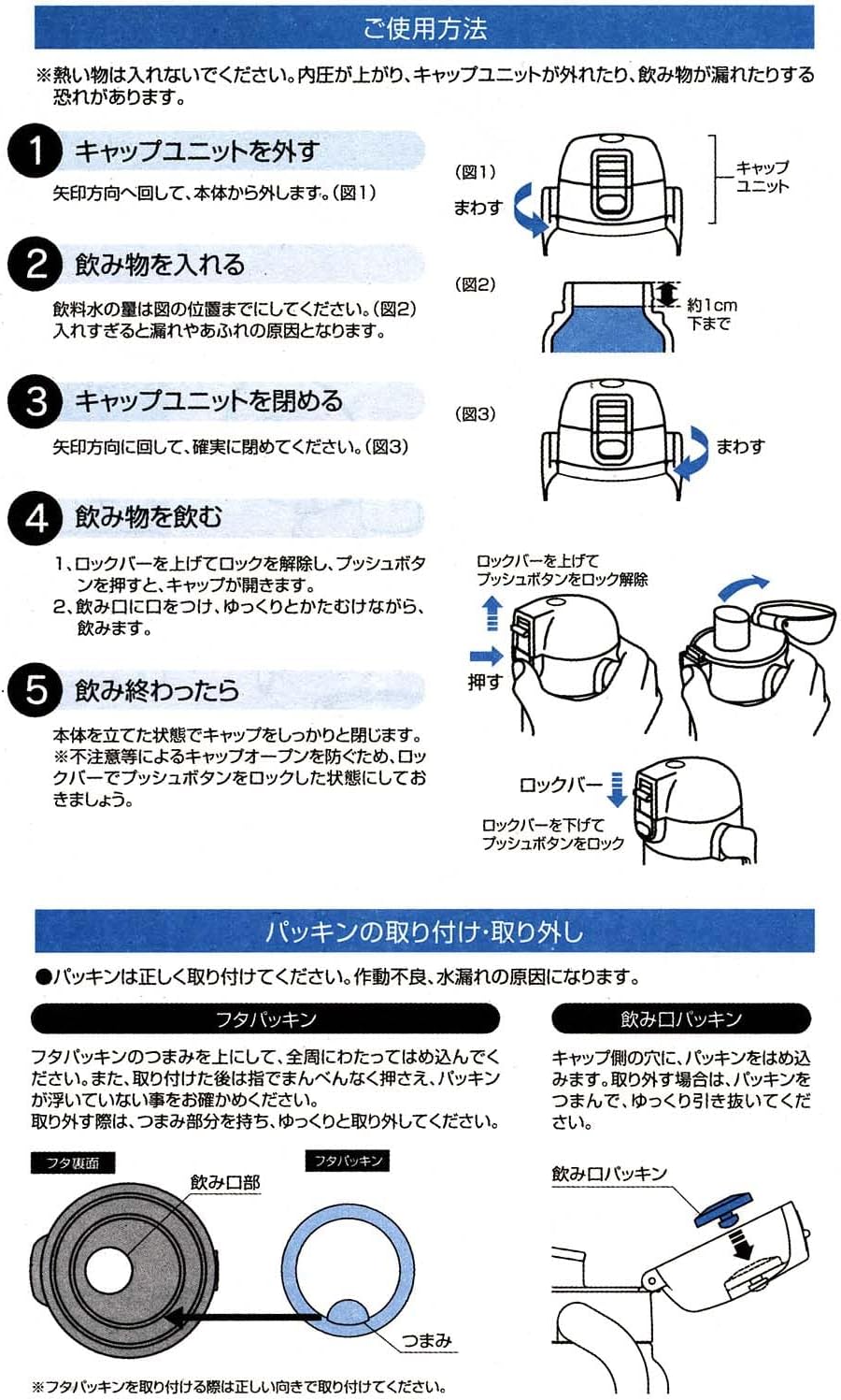 One Push Open Cold Water Direct Stainless Steel Bottle Comes with a handle for easy carrying. One-push open lid for quick drinking when you want to drink. Vacuum double wall construction keeps cold Wide mouth for easy insertion of ice cubes. Secure cap lock design. Cold Retention: Less than 15.4°F (7°C) (6 hours)