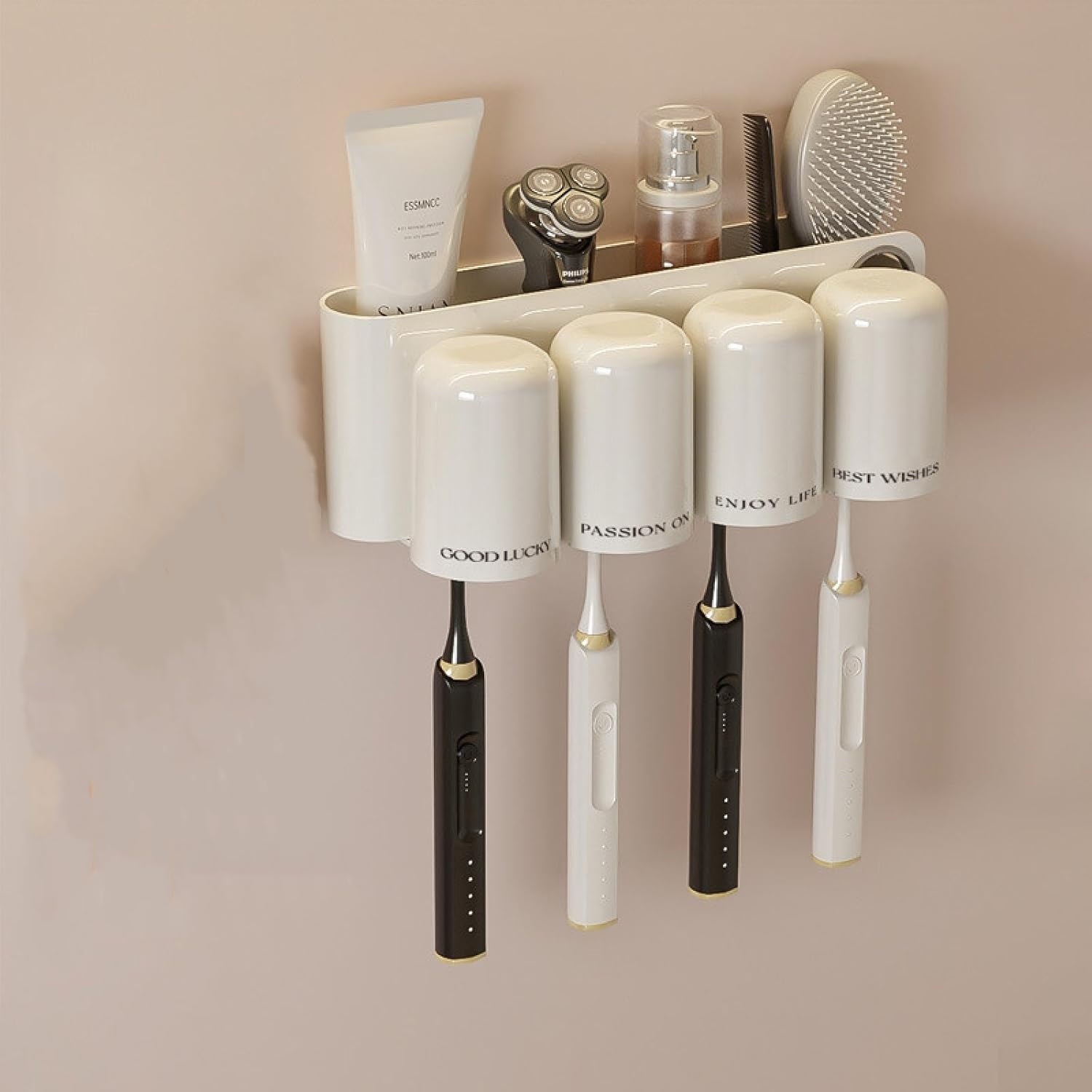 Product category: toothbrush holderColor: two cups of toothbrush holder, two cups of toothbrush holder with squeeze toothpaste, three cups of toothbrush holder, three cups of toothbrush holder with squeeze toothpaste, four cups of toothbrush holder, four cups of toothbrush holder with squeeze toothpaste, squeeze toothpasteFunction: storage, squeeze toothpaste, no punchingMaterial: Plastic