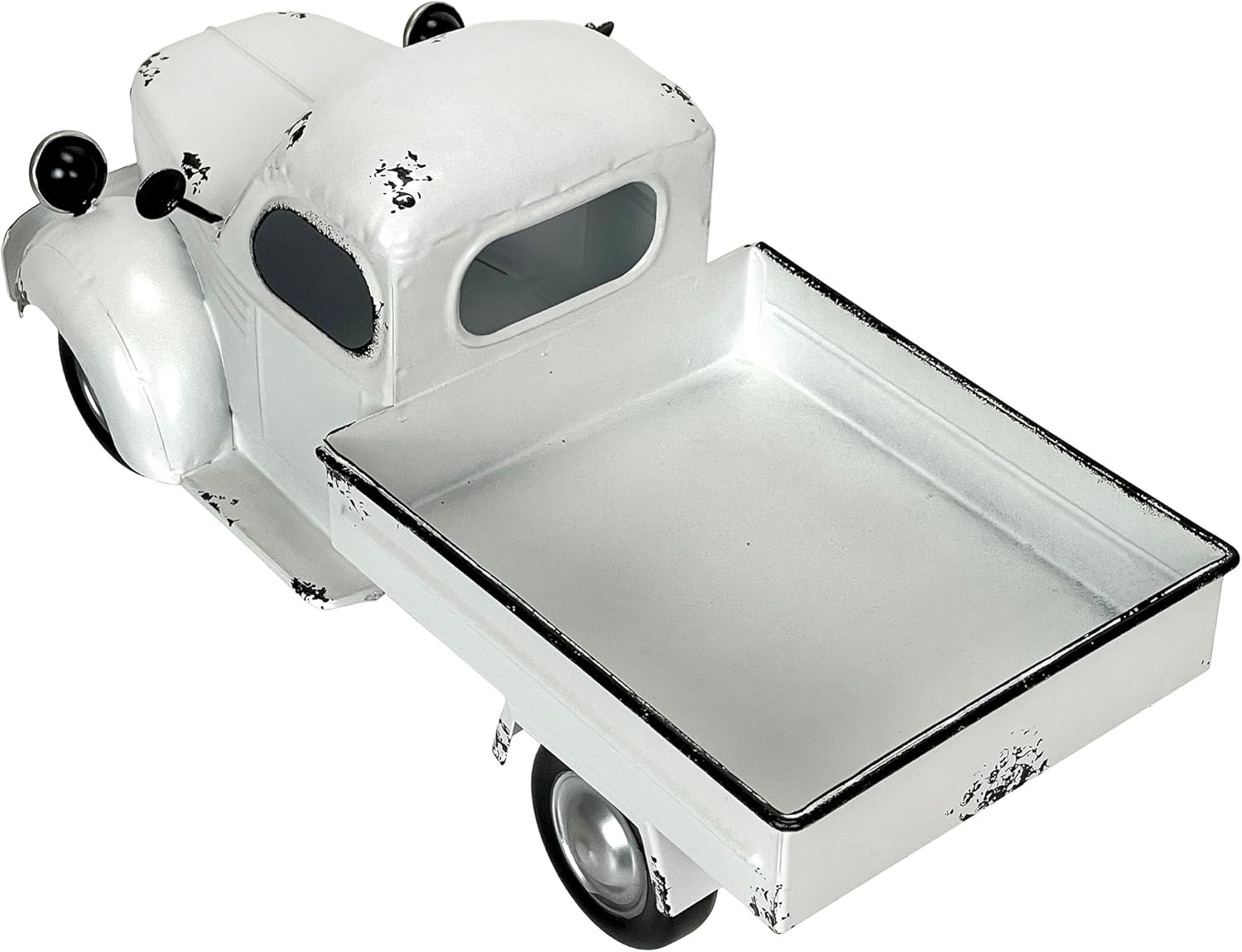 Bring vintage farmhouse style and playful nostalgia to your decor with this Weathered White Metal Truck Planter. Expertly crafted from durable metal with a distressed white finish, this decorative planter is inspired by classic pickups and blends antique character with modern versatility. Unlike traditional planters, the truck’s shallow bed measures 6.75 x 5.75 x 1.25 inches and does not have a drain hole, making it especially well-suited for faux plants, dried arrangements, or as a creative catchall tray for small accessories. Measuring 14 inches long, 6.75 inches wide, and 6.5 inches high, the sturdy truck body is eye-catching enough for a living room, kitchen, entryway, or garden nook. Use it as a unique centerpiece for your dining table, display it on a shelf with seasonal decor, or accent your porch with its rustic charm. The weathered, antique-style finish fits beautifully with farmhouse, cottage, shabby chic, and eclectic settings, while the classic pickup design adds a touch of Americana to any space. Because the bed is shallow and lacks drainage, this planter is perfect for displaying faux greenery, succulents in pots, air plants, or even as a tray for decorative objects or wrapped treats. It’s lightweight for easy repositioning but sturdy enough to serve as a lasting decor statement year after year. The Weathered White Metal Truck Planter isn’t just a container—it’s a conversation starter and a delightful gift for anyone who loves vintage vehicles, rustic farmhouse design, or unique accent pieces. Surprise a friend for a housewarming, birthday, or holiday, or add a touch of creative flair to your own home. Embrace the inviting, nostalgic vibe and versatile possibilities of this classic truck planter and let your imagination drive your decor.