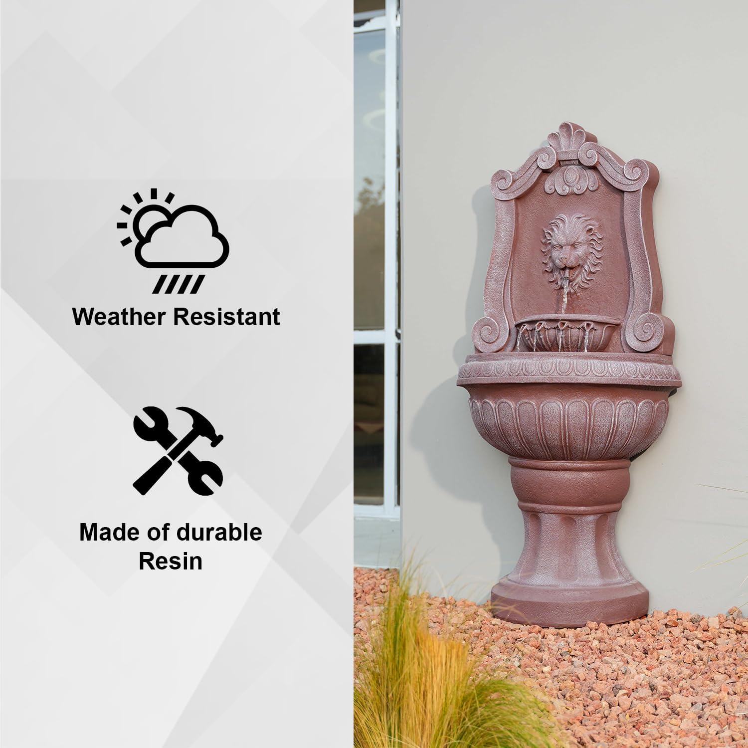The Guardian of Tranquility Lion Head Floor Fountain from XBrand adds a regal touch to any outdoor space. Standing 52.4 inches tall, this Large Outdoor Fountain features a detailed lion head that exudes strength and serenity. Its Two-Tier Fountain design ensures a soothing, cascading water effect that creates a calming atmosphere in your garden or patio. Crafted from durable resin fountain material, this fountain is weather-resistant and built to last, withstanding various outdoor elements. The Lion Fountain for Garden adds timeless elegance, while the sandstone finish complements a wide range of outdoor decor styles. Easy to set up and maintain, this fountain is a perfect statement piece for enhancing your backyard with minimal effort.